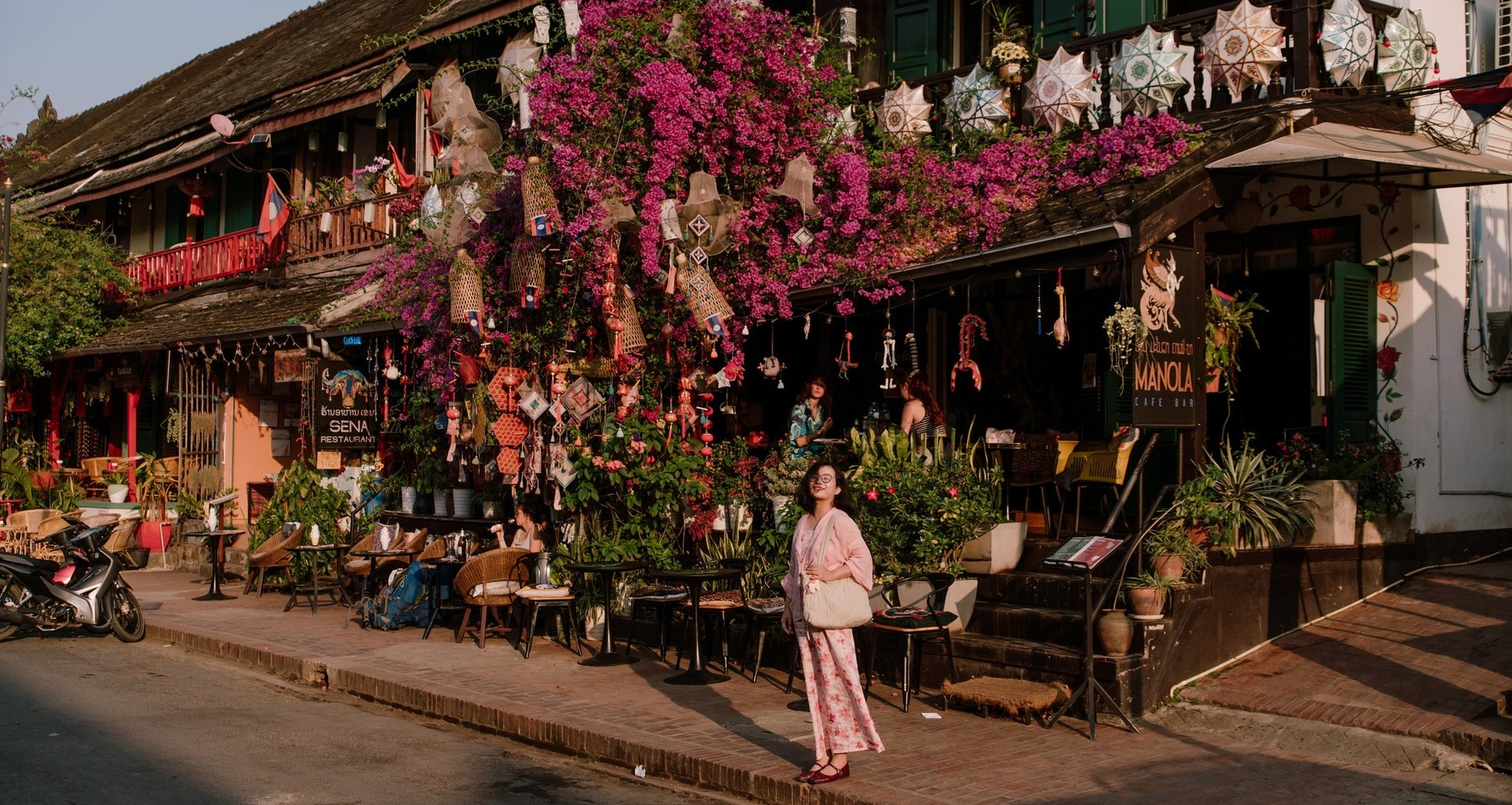 Tới Lào, nhóm du khách Việt đến Thakhek nghỉ đêm. Đây là một thị trấn nhỏ còn giữ được cả những dãy phố, căn nhà đậm chất Đông Dương từ đầu thế kỷ 20 đến giờ.