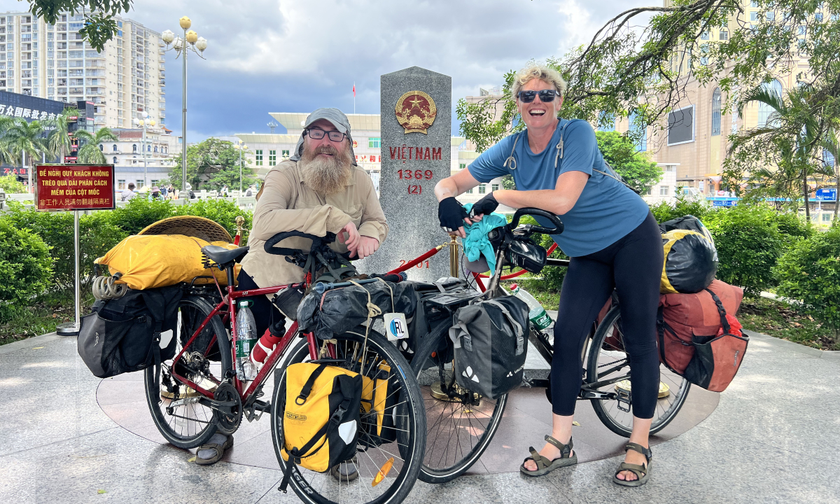 Sau khoảng 8 tháng đạp xe gần 14.000 km qua 15 quốc gia, vợ chồng Mark và Ellie, đến từ Ireland, đặt chân tới Việt Nam qua cửa khẩu Móng Cái hồi tháng 9.