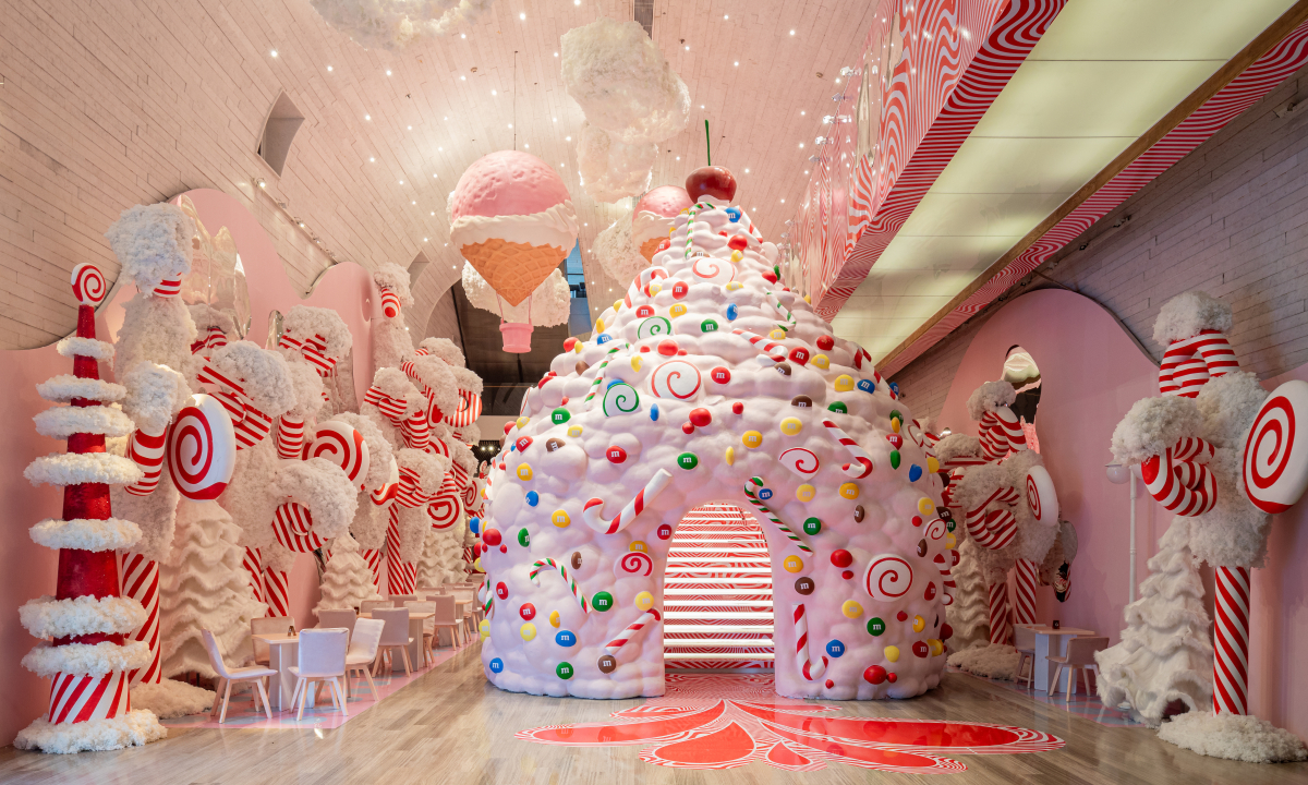 Gem Café: Nằm ngay tầng trệt, toàn bộ không gian quán được trang trí theo chủ đề “vũ trụ kẹo ngọt” với tông chủ đạo hồng, trắng, đỏ; điểm nhấn nổi bật là cây thông kẹo cao 10 m. Bàn ghế được phủ trắng toàn bộ,