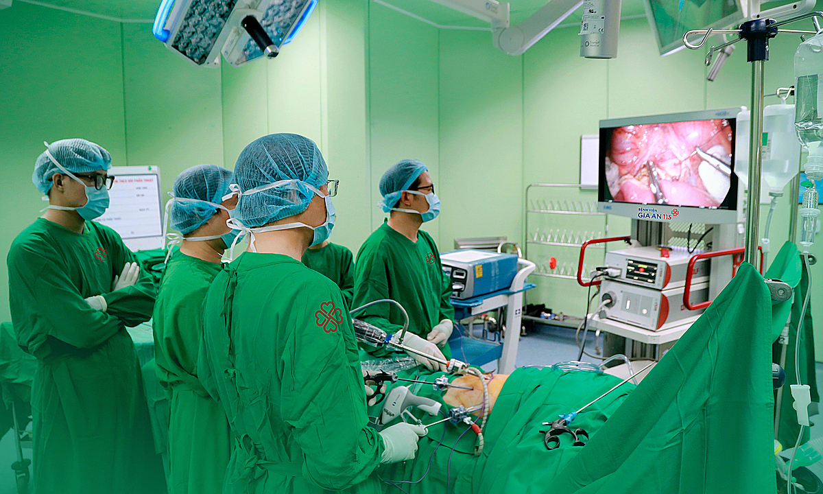 Các bác sĩ phẫu thuật nội soi cho bệnh nhân. Ảnh: Bệnh viện cung cấp