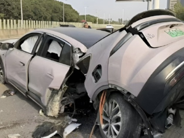 Chiếc Nio EC6 được cho là di chuyển ở tốc độ cao trước khi lao vào một rào chắn bê tông bên đường. Cú va chạm mạnh đã khiến phần đuôi xe tách rời khỏi khoang hành khách. Dù vậy, hai người trên xe chỉ bị thương nhẹ và không gặp nguy hiểm đến tính mạng.