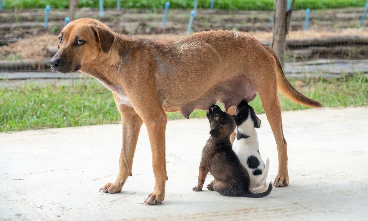 Trước và sau khi sinh con, chó mẹ thay đổi nội tiết tố, nhạy cảm và thực hiện bản năng bảo vệ con nên hung dữ, dễ cắn người hơn. Ảnh: Vecteezy