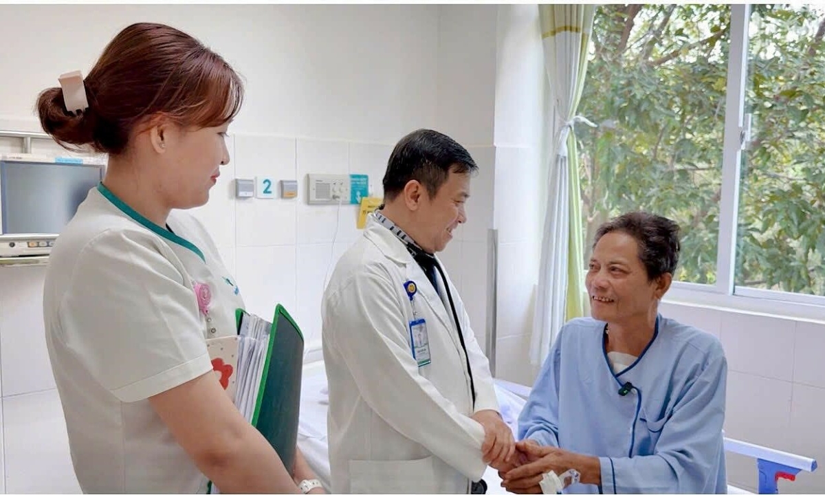 Bác sĩ Trần Phước Hòa thăm khám người bệnh sau ca mổ. Ảnh: Bệnh viện cung cấp