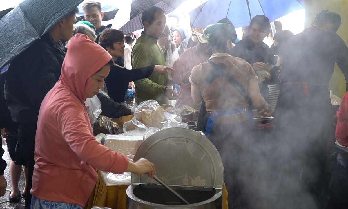 Khách đội mưa ăn đặc sản ở hội chợ mùa thu