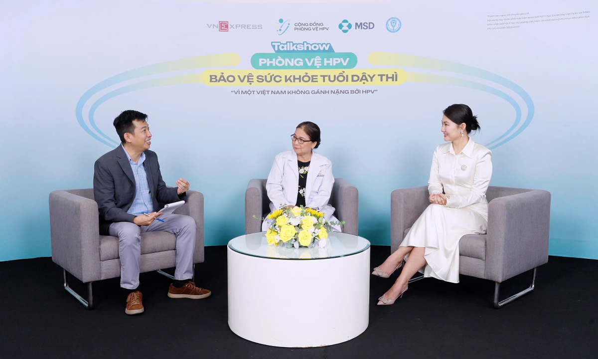 Bác sĩ Bạch Thị Chính, diễn viên Ngọc Lan chia sẻ về tuổi dậy thì và HPV, nhà văn Hoàng Anh Tú dẫn chương trình.