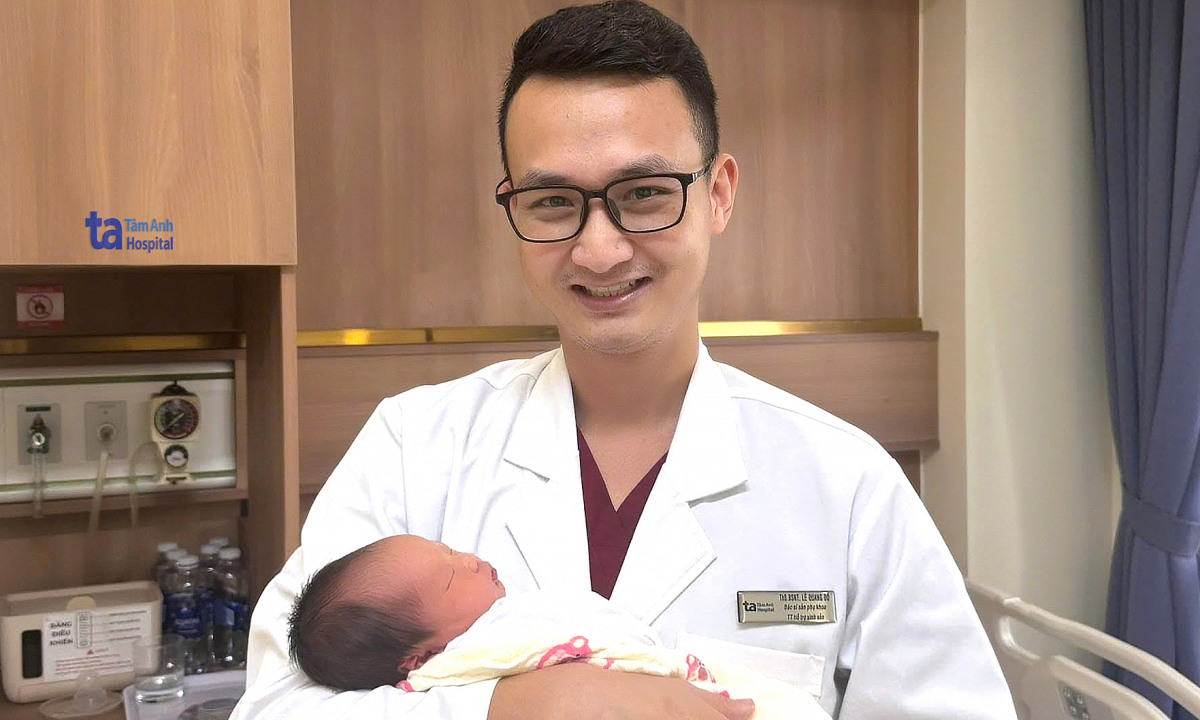 Ths.BS Lê Quang Đô bế con gái chị An sau khi chào đời. Ảnh: IVF Tâm Anh