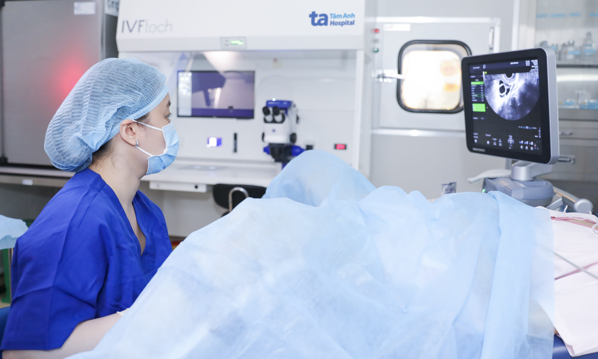 Bác sĩ Ngọc Ngân thực hiện kỹ thuật chọc hút noãn cho người bệnh. Ảnh: Thanh Luận