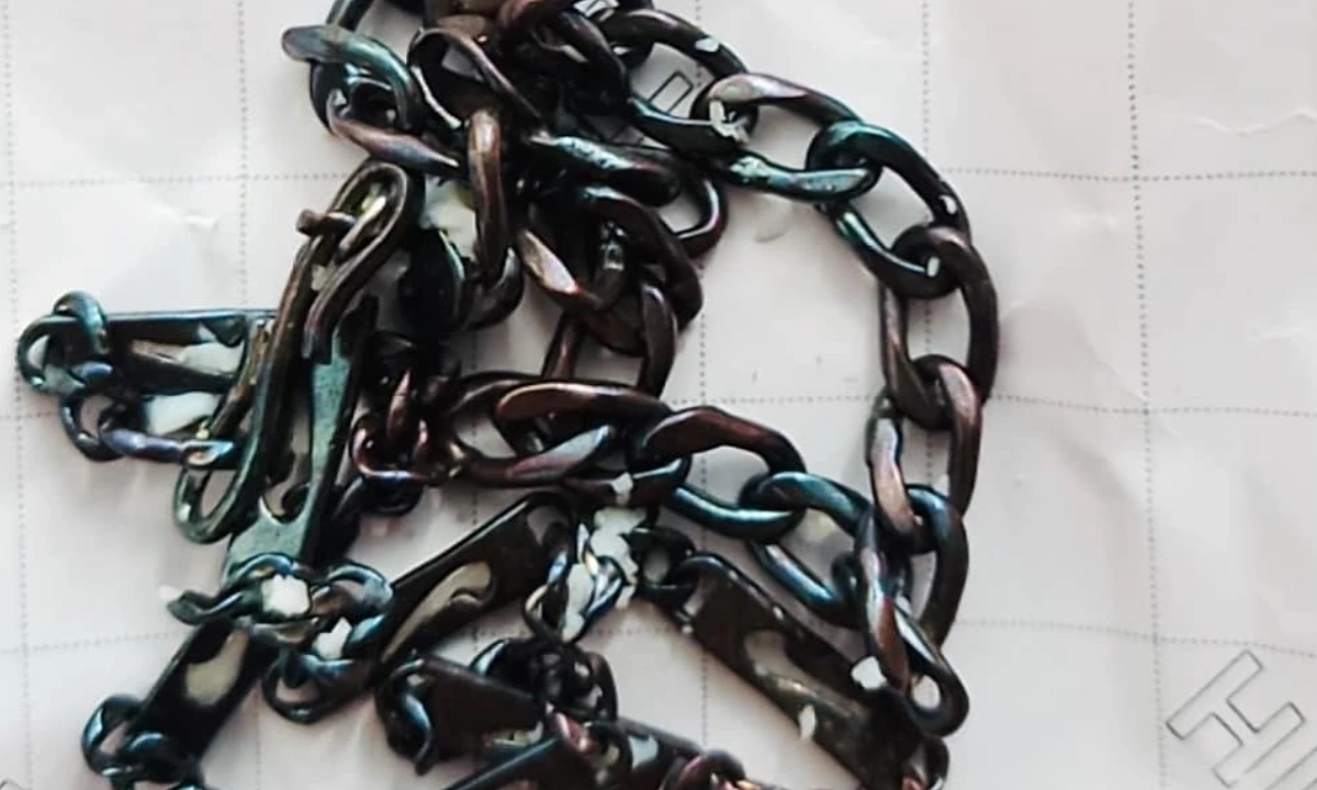 Dây bạc đổi màu sau khi được một bệnh nhân dùng “đánh cảm”. Ảnh: Nhân vật cung cấp