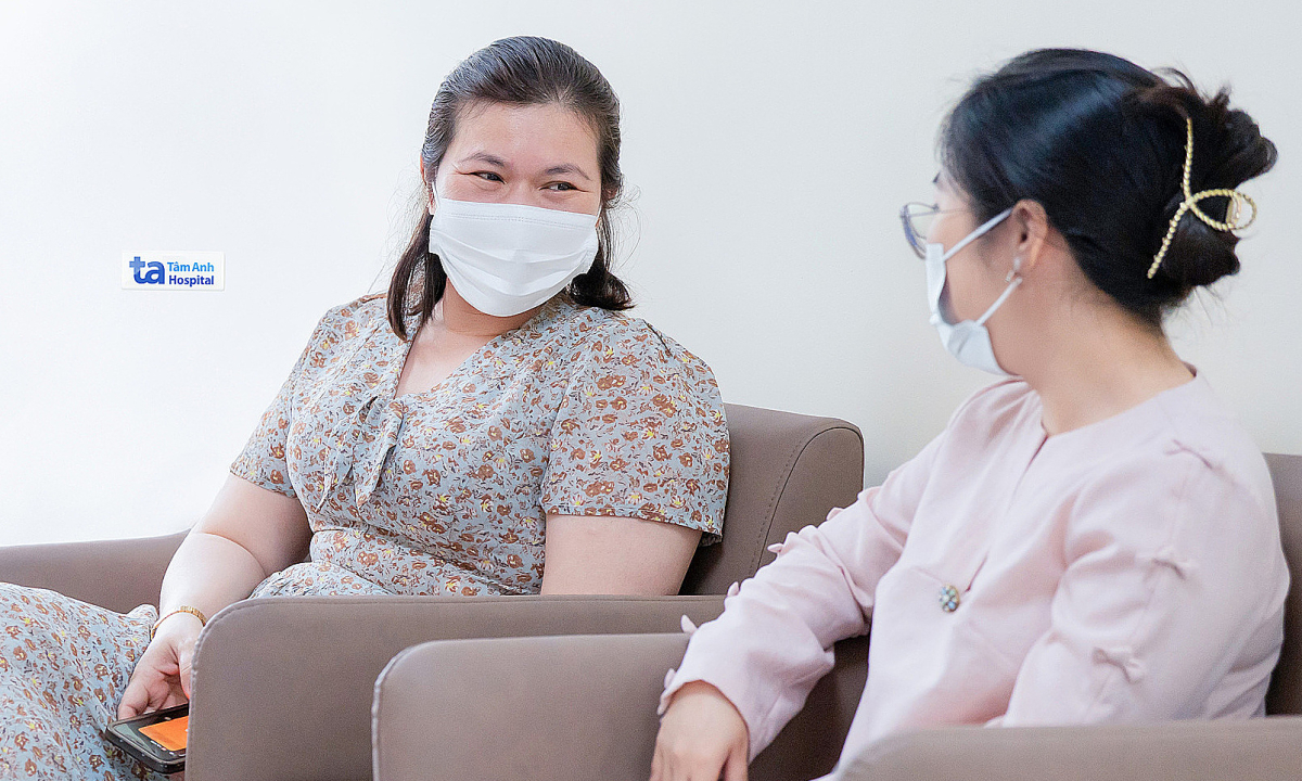Bà Minh (trái) và chị Liên đến khám tại Bệnh viện Đa khoa Tâm Anh. Ảnh: Bệnh viện cung cấp