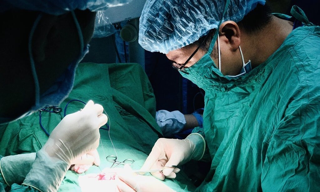 Bác sĩ phẫu thuật cho một bệnh nhân. Ảnh: Bác sĩ cung cấp
