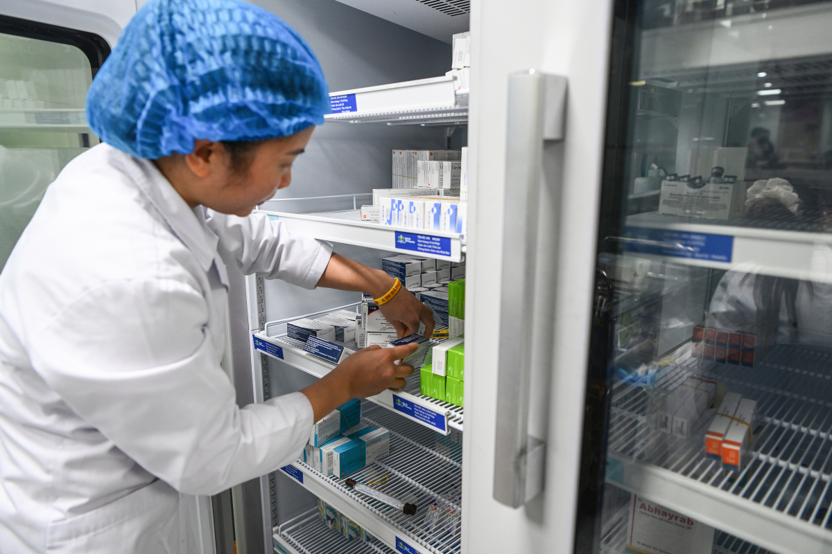 Bác sĩ kiểm tra vaccine cúm tại Bệnh viện Nhi Trung ương. Ảnh: Giang Huy