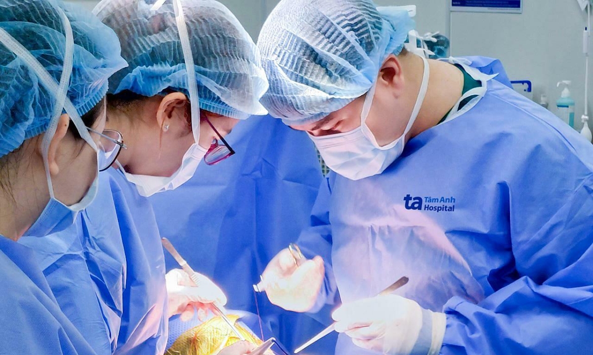 Bác sĩ phẫu thuật cắt tuyến giáp cho bệnh nhân. Ảnh: Hạ Vũ