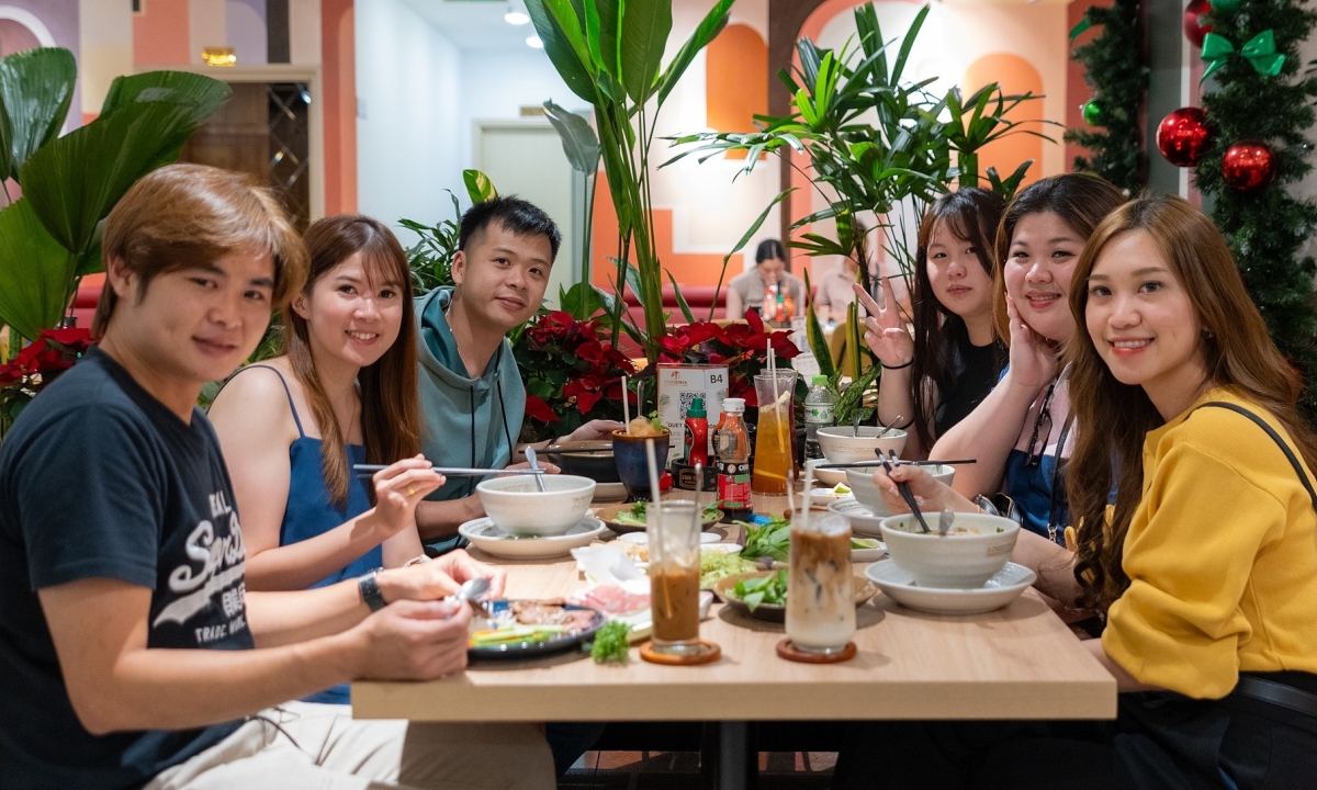 Thực khách thưởng thức phở tại nhà hàng The Pheonix, sân bay Tân Sơn Nhất. Ảnh: Sasco