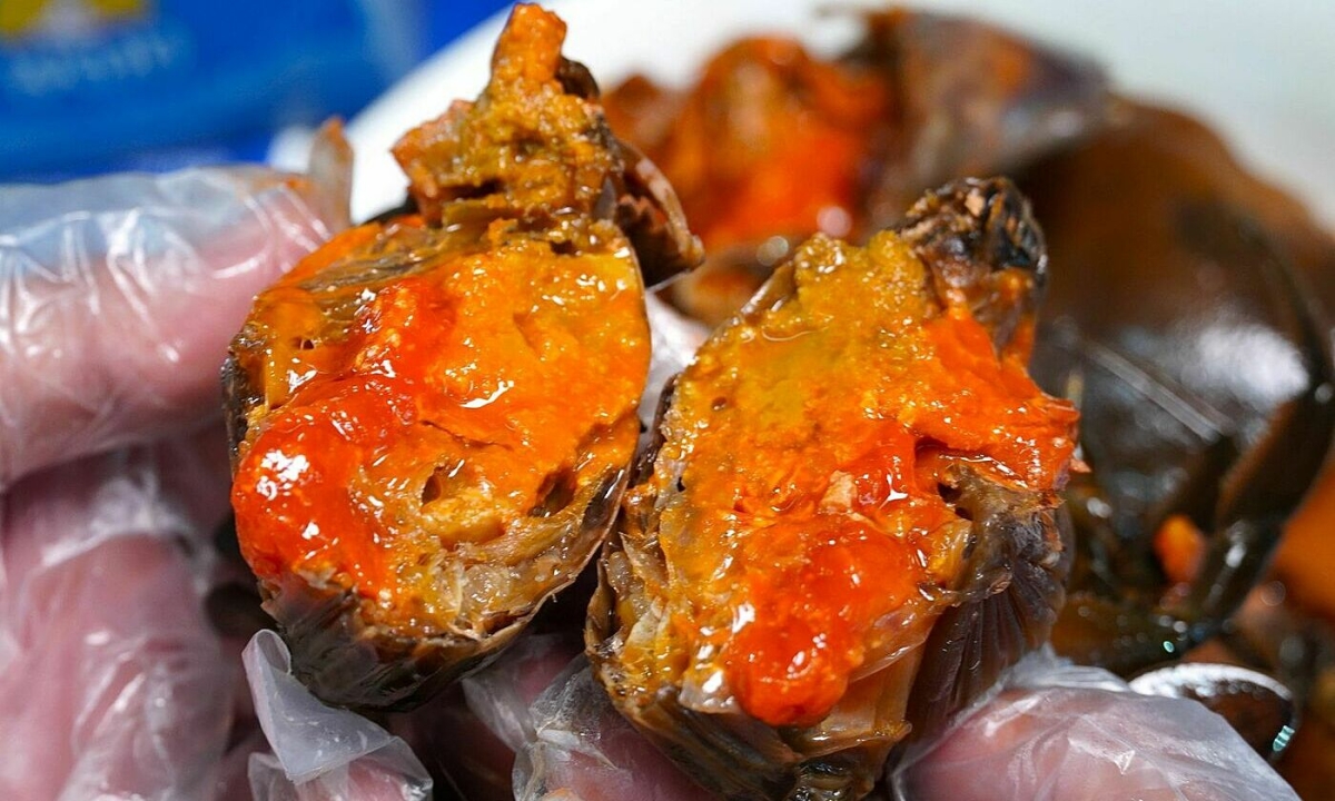 Cua gạch ngâm nước mắm là phiên bản nâng cấp của cách muối cua truyền thống của người dân Cà Mau. Ảnh: Chúc Ly