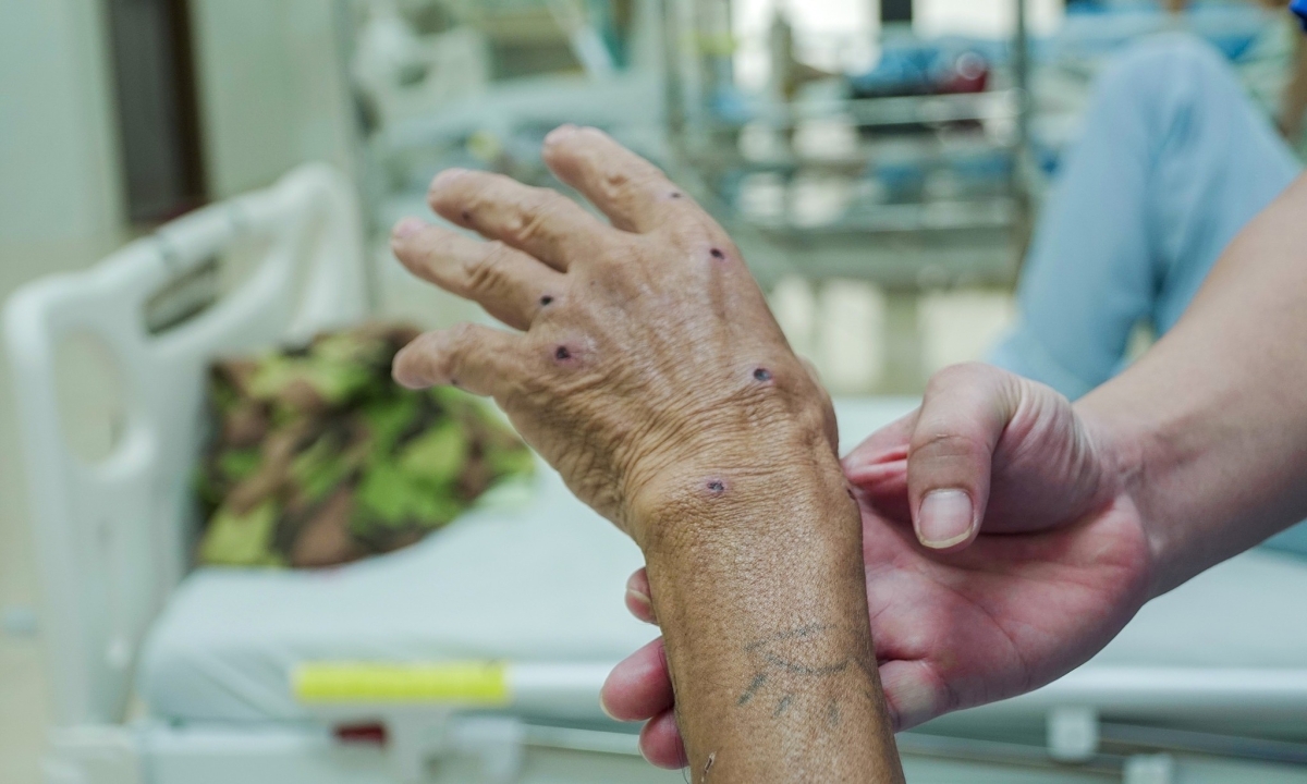 Cơ thể chi chít vết đốt của bệnh nhân. Ảnh: Bệnh viện cung cấp