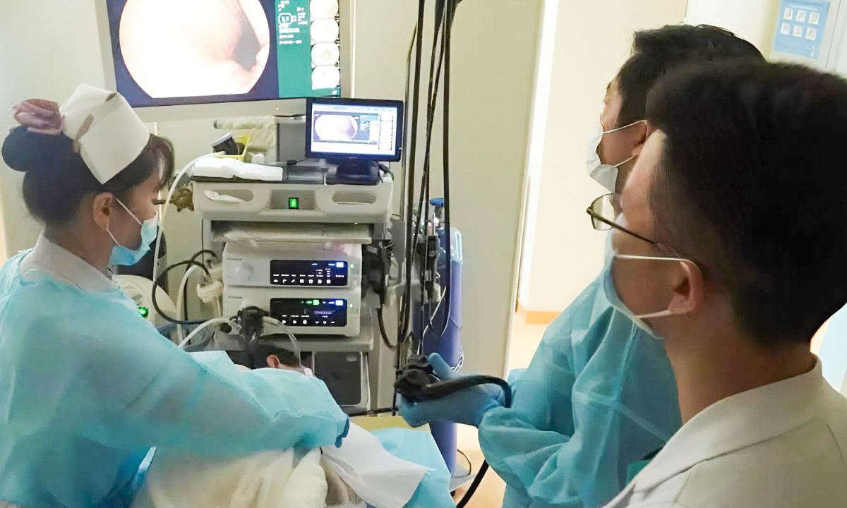 Y bác sĩ nội soi cho bệnh nhân. Ảnh: Bệnh viện cung cấp