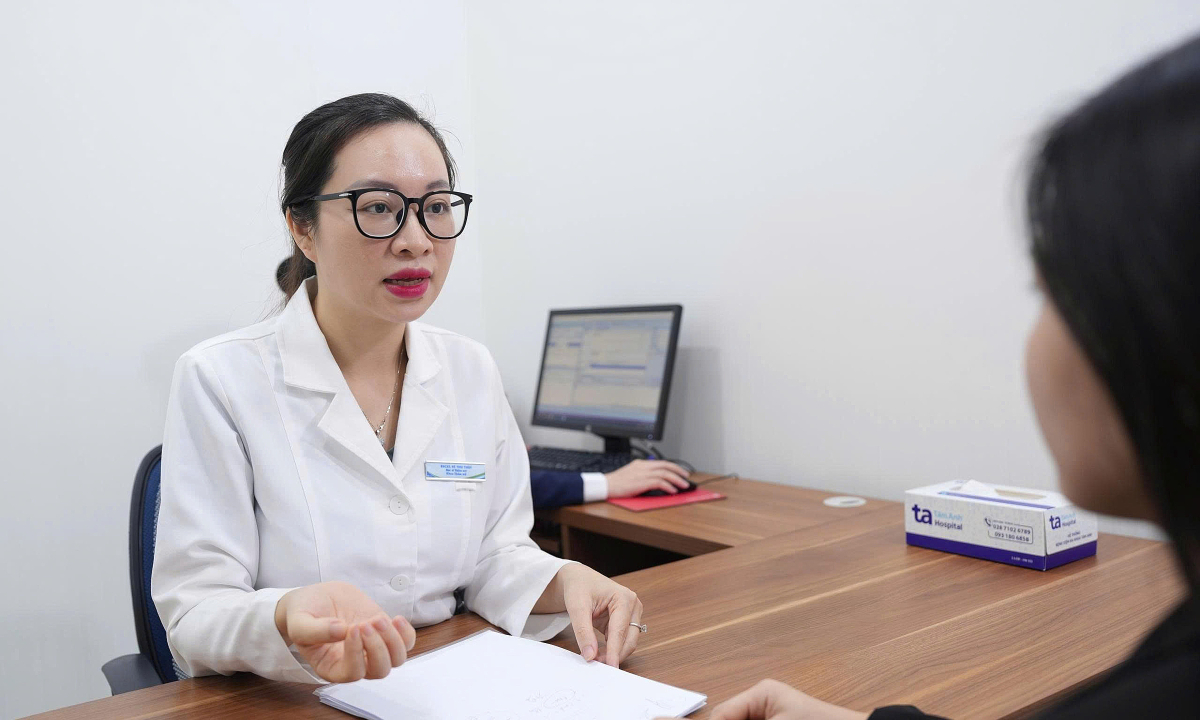 Bác sĩ khoa Thẩm mỹ tư vấn cho một phụ nữ. Ảnh minh họa: Bệnh viện Đa khoa Tâm Anh