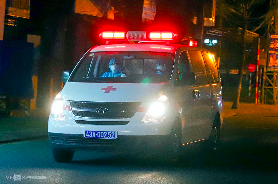 Xe cứu thương di chuyển trên đường phố Đà Nẵng. Ảnh: Nguyễn Đông