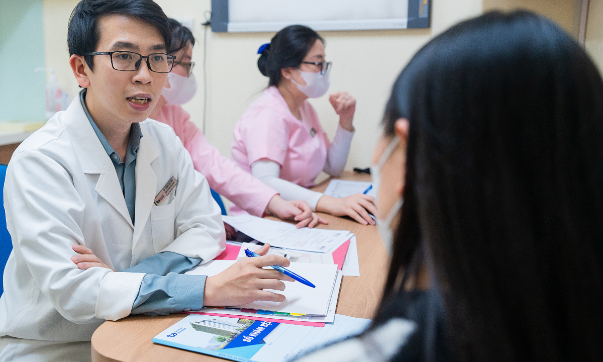 Bác sĩ Trung tâm Sản Phụ khoa đang tư vấn cho một phụ nữ. Ảnh: Bệnh viện Đa khoa Tâm Anh Hà Nội