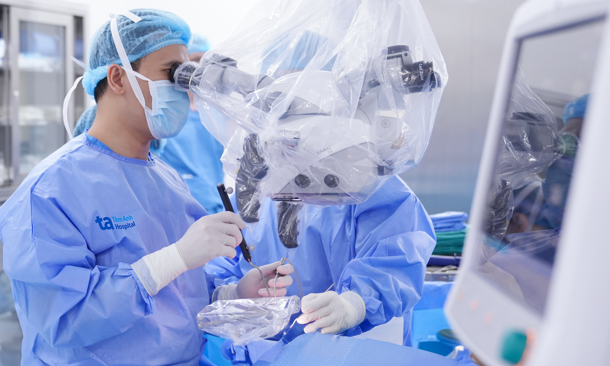 TS.BS Nguyễn Đức Anh, Trưởng khoa Ngoại Thần kinh Cột sống, Bệnh viện Đa khoa Tâm Anh Hà Nội, cho biết khối dị dạng mạch máu não ở người bệnh vỡ gây chảy máu, tụ máu rất lớn trong não, tình trạng rất nguy kịch. Bác sĩ chỉ định vi phẫu mở hộp sọ để loại bỏ triệt để khối máu tụ lớn, lấy bỏ khối dị dạng, cầm máu, bảo tồn tối đa cấu trúc thần kinh.
