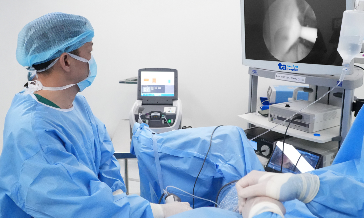 Bác sĩ điều trị tăng sinh lành tính tuyến tiền liệt cho ông Nhiên bằng liệu pháp nhiệt hơi nước Rezum. Ảnh: Bệnh viện Đa khoa Tâm Anh