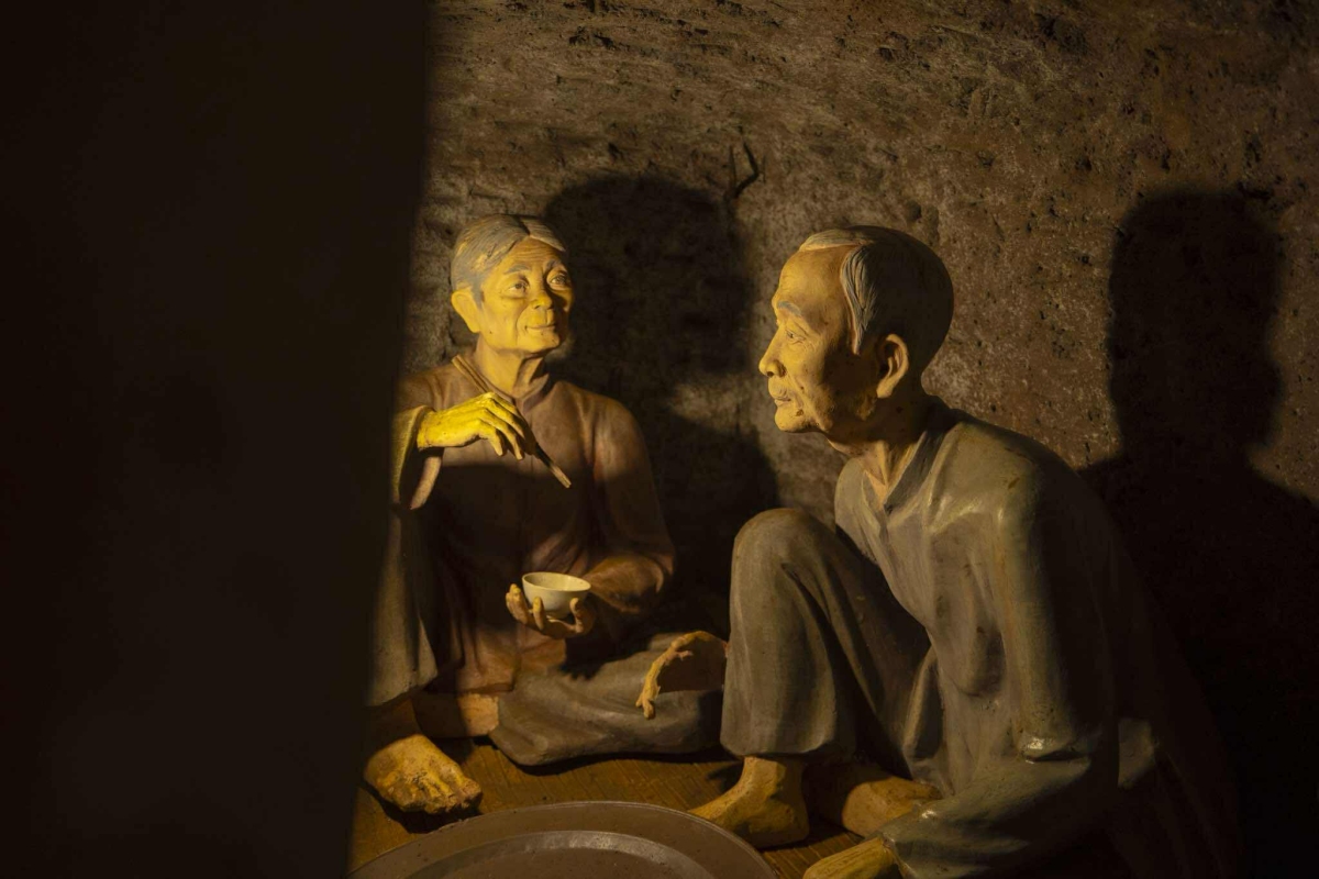 Công trình được xây dựng thành ba tầng với 13 cửa ra vào, gồm 7 cửa hướng ra biển và 6 cửa thông lên đồi, đồng thời đóng vai trò như các lỗ thông hơi. Mỗi cửa hầm đều được chống sập bằng gỗ và thường xuyên gia cố để tránh sụt lở. Người dân xưa kia ở trong địa đạo hầu như không ra ngoài, chỉ xuất hiện khi thật sự cần thiết và đảm bảo an toàn.