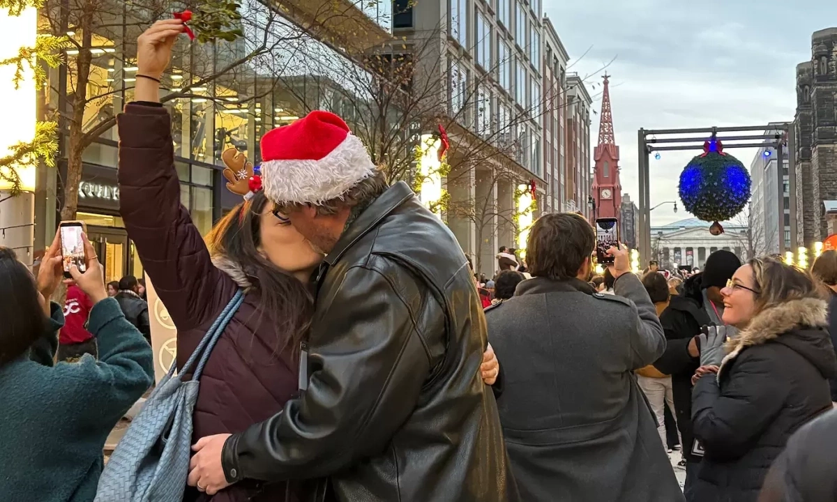 Hàng nghìn người lập kỷ lục trao nụ hôn dưới quả cầu tầm gửi ở Washington hôm 13/12. Video: DC_Spot