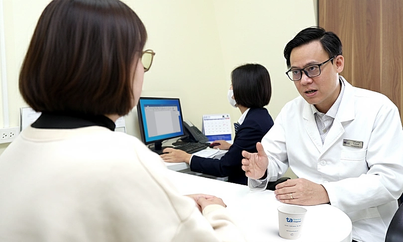 Bác sĩ tư vấn cho bệnh nhân phác đồ điều trị cho Loan. Ảnh: Bệnh viện Đa khoa Tâm Anh