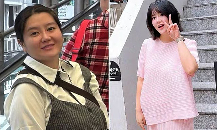 Lee Soo-min lúc mang bầu và sau khi giảm được 26 kg. Ảnh: Lee Soo-min