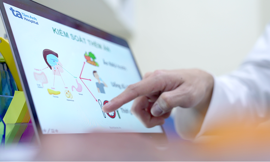 Bác sĩ tư vấn chế độ dinh dưỡng cho người bệnh. Ảnh: Bệnh viện Đa khoa Tâm Anh