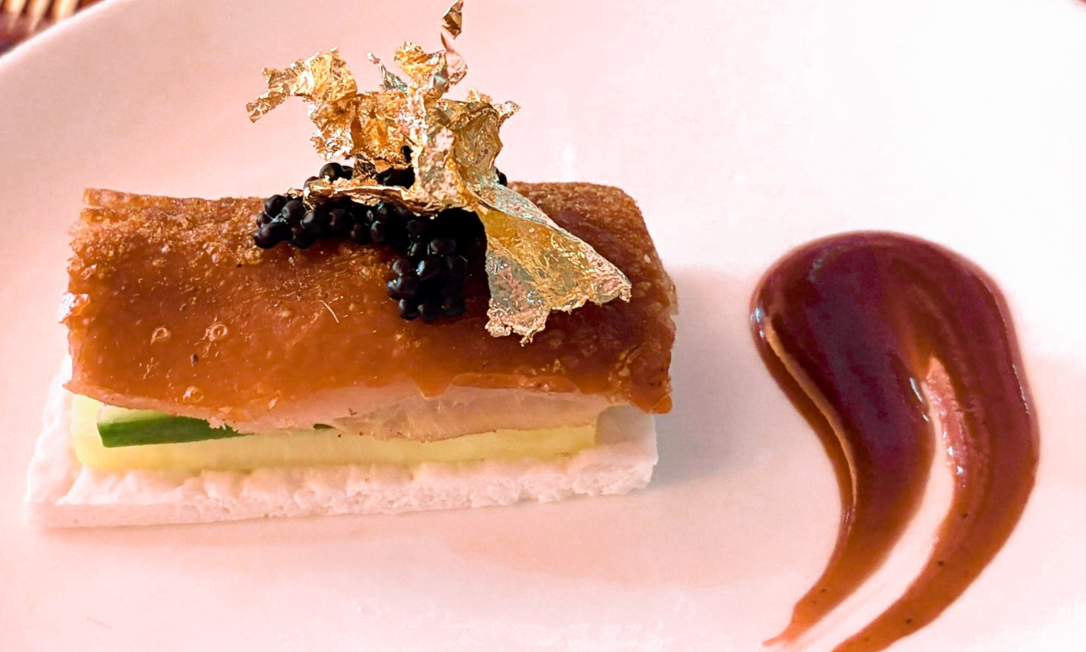 Món heo sữa quay “phú quý hoàng kim toàn” được phục vụ trong chương trình. Ảnh: New HongKong City