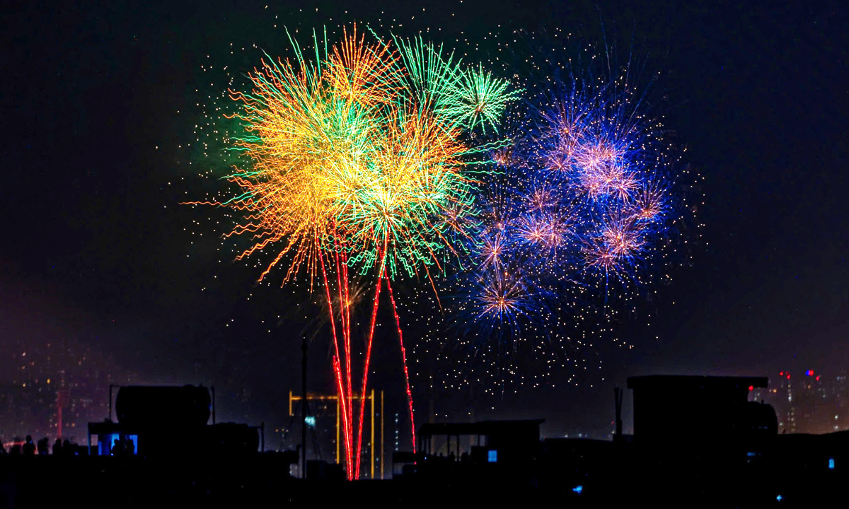 Hà Nội bắn pháo hoa ở khu vực đường đua F1 chào mừng 50 năm Ngày Giải phóng miền Nam, thống nhất đất nước. Ảnh: Thanh Hải