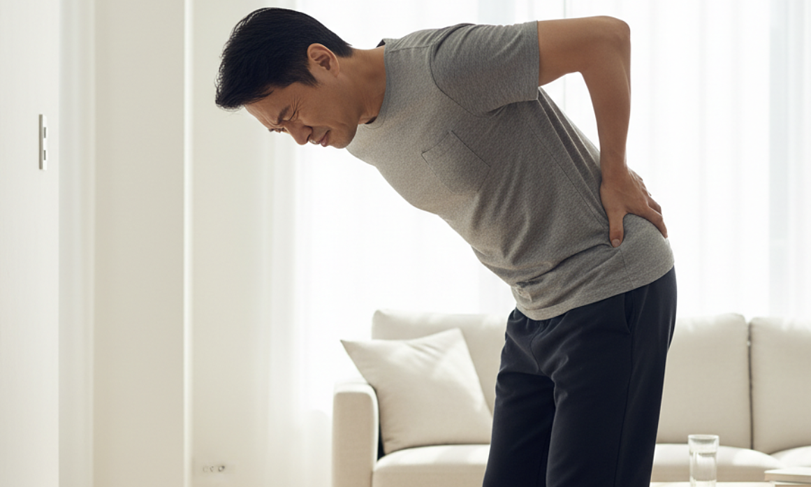 Lưng đột ngột đau dữ dội kèm tiểu máu có thể là dấu hiệu cảnh báo sỏi niệu quản. Ảnh minh họa tạo bởi AI
