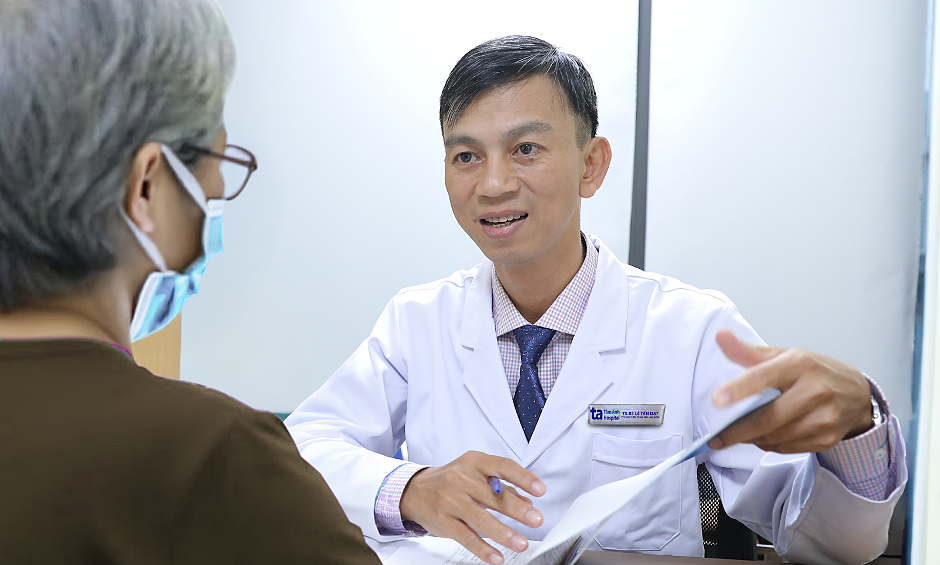 Bác sĩ Tấn Đạt khám cho bà Hòa. Ảnh: Bệnh viện Đa khoa Tâm Anh