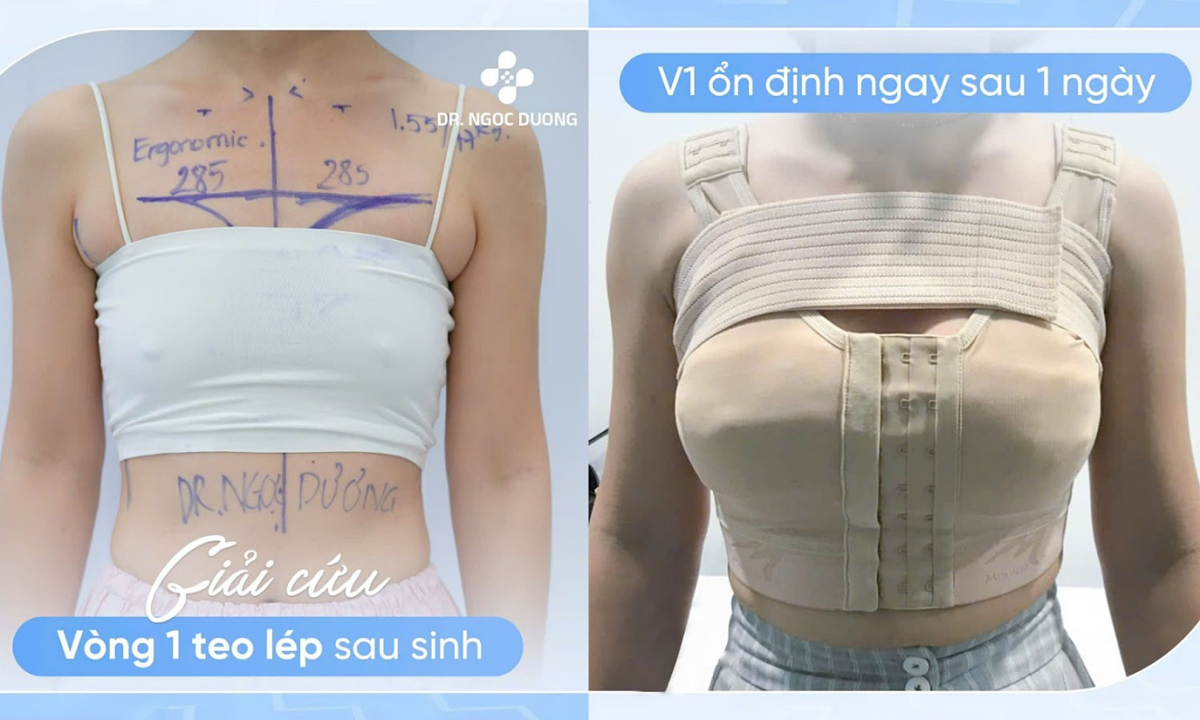 Hình trước – sau thực hiện kỹ thuật nâng ngực tái cấu trúc. Ảnh: Bác sĩ Ngọc Dương