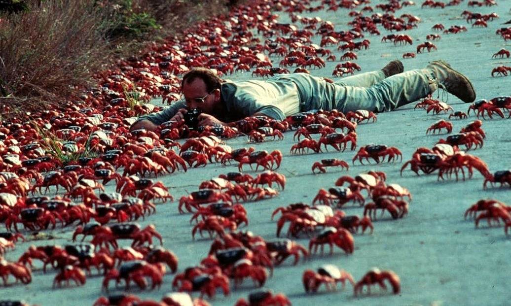 Hàng triệu con cua đỏ xâm chiếm lòng đường để di chuyển ra bờ biển giao phối vào cuối tháng 10, trên đảo Christmas, tạo nên cảnh tượng ngoạn mục.