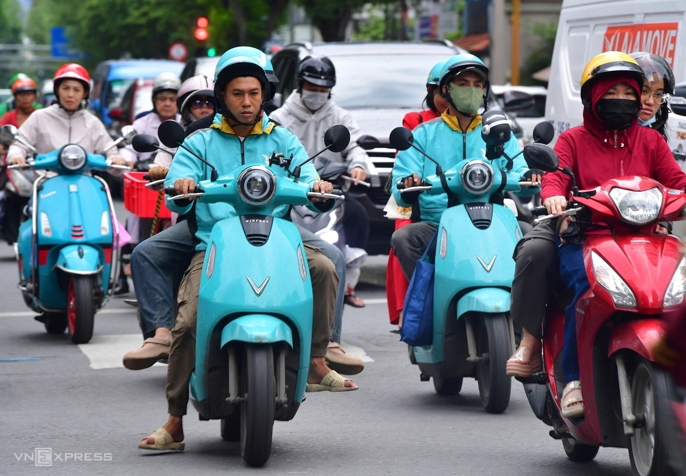 Tài xế hãng xe công nghệ sử dụng xe điện trên đường phố TP HCM. Ảnh: Thanh Tùng