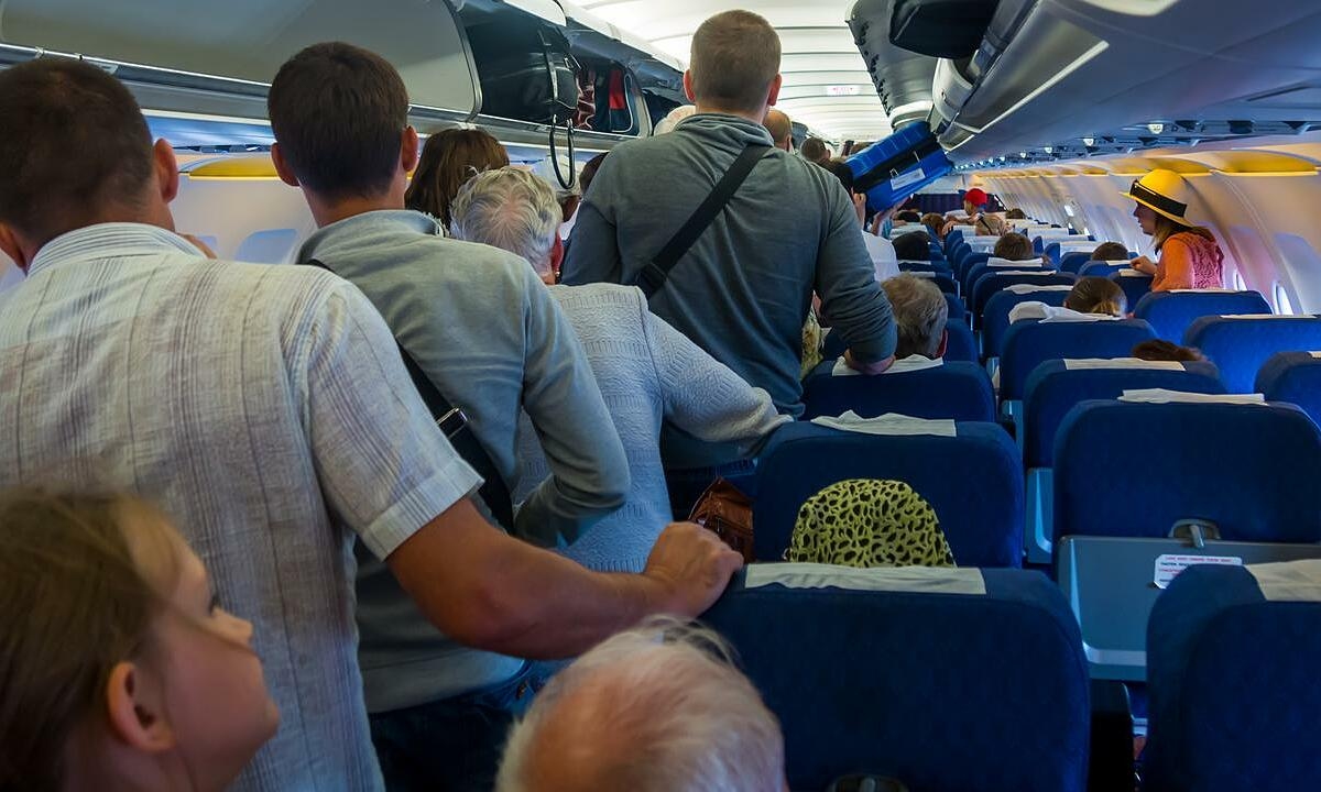 Nhiều hành khách có thói quen rời ghế và tràn ra khu vực lối đi ngay khi máy bay hạ cánh. Ảnh: Escape