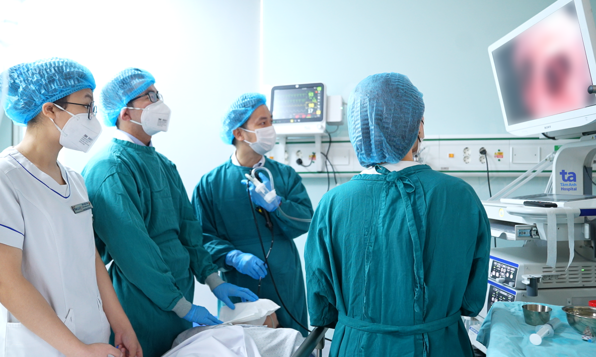 Bác sĩ thực hiện nội soi phế quản tìm dị vật trong đường thở. Ảnh: Bệnh viện Đa khoa Tâm Anh