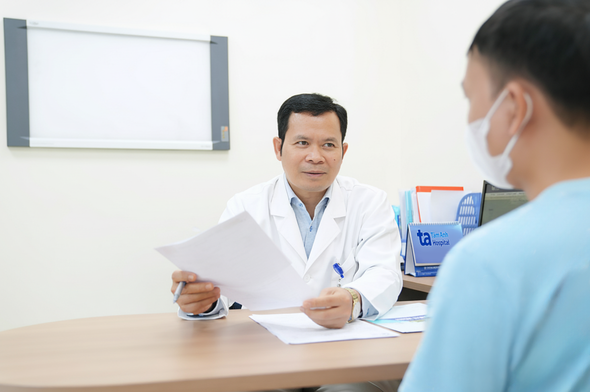 PGS Hinh khám và tư vấn cho người bệnh. Ảnh: Bệnh viện Đa khoa Tâm Anh