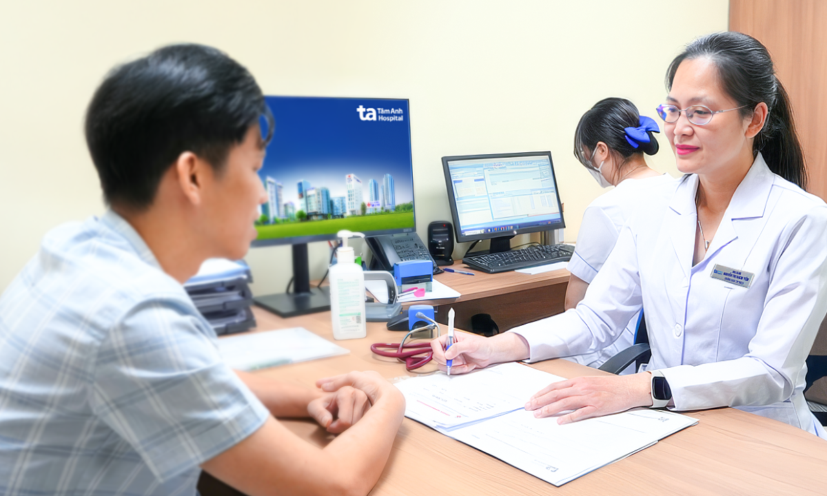 Bác sĩ Thư tái khám cho anh Tú. Ảnh: Bệnh viện Đa khoa Tâm Anh