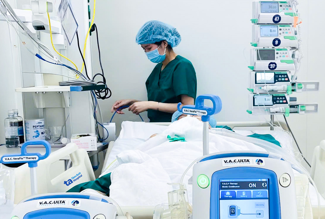 Điều trị VAC liên tục cho người bệnh ở khoa ICU. Ảnh: Bệnh viện Đa khoa Tâm Anh