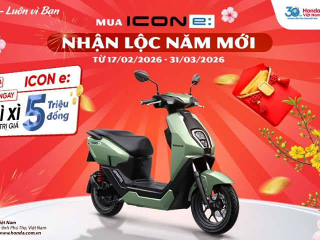 Theo đó, từ ngày 17/02/2026 đến hết ngày 31/03/2026, khách hàng trên toàn quốc khi mua xe gắn máy điện Honda ICON e: tại các Cửa hàng Bán Xe máy và Dịch vụ do Honda Ủy Nhiệm (HEAD) Kinh doanh xe điện sẽ được nhận lì xì tiền mặt trị giá 5.000.000 VNĐ.