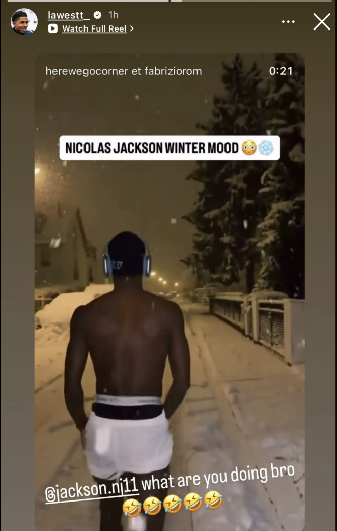 Thậm chí có người hài hước cho rằng tiền đạo này “đi tìm đường chuyền của Palmer tại Munich”. Không chỉ cổ động viên, chính đồng đội của Jackson cũng tỏ ra bất ngờ. Trung vệ Wesley Fofana đã chia sẻ lại video lên Instagram cá nhân kèm dòng chú thích: “Cậu đang làm gì vậy bro?” cùng hàng loạt biểu tượng cười.