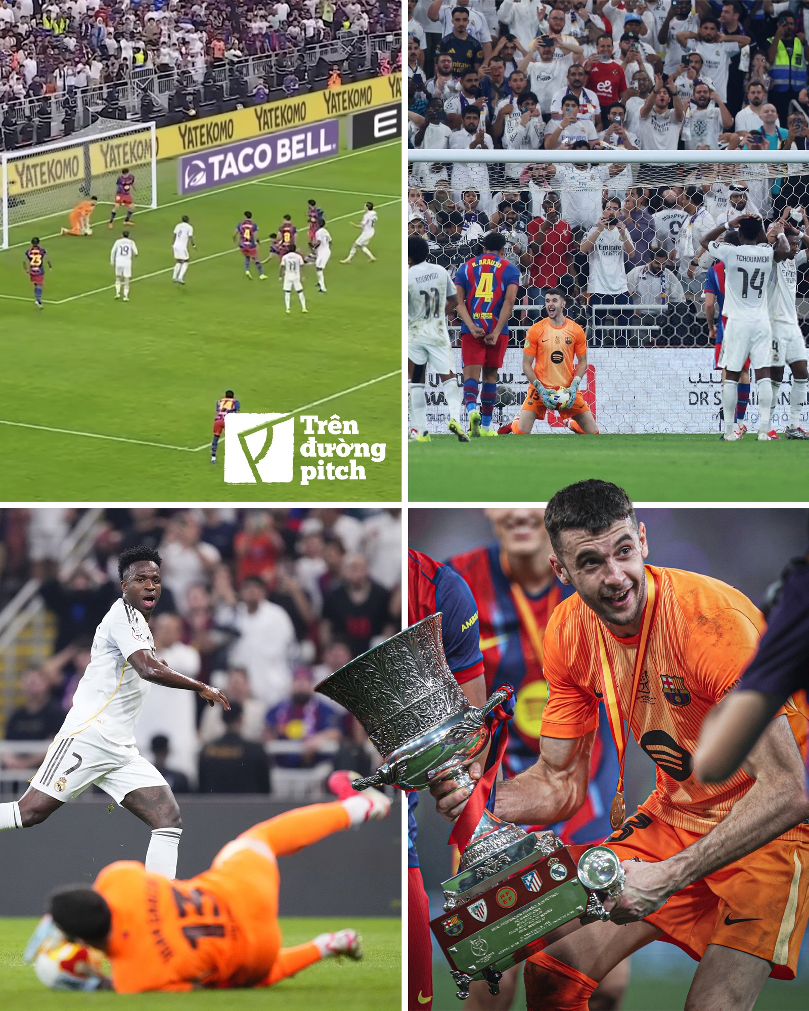 Joan García bước vào trận El Clásico đầu tiên trong đời và khép lại nó bằng cách ôm danh hiệu đầu tiên cùng Barça trong tay. Ngay từ hiệp một, anh thắng Vinícius Júnior trong pha đối mặt khi tiền đạo người Brazil băng xuống bên trái.