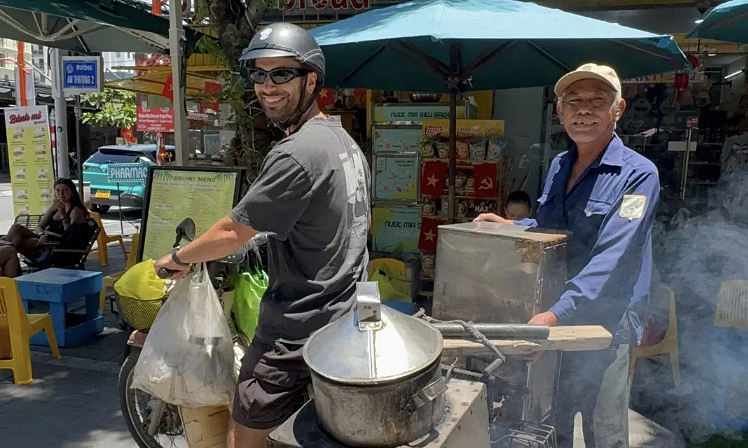 Yêu thích Việt Nam, Ky cùng bạn đời đã chuyển đến Đà Nẵng sinh sống từ tháng 4 vừa qua. Với đam mê tìm hiểu văn hóa và ẩm thực Việt, anh bất ngờ khi lần đầu thử món bánh bao mua từ xe hàng rong. “Hương vị đậm đà, ngon hơn tưởng tượng”, anh nhận xét và liên tưởng đến bánh meat pie, một món ăn nhanh phổ biến ở Australia.