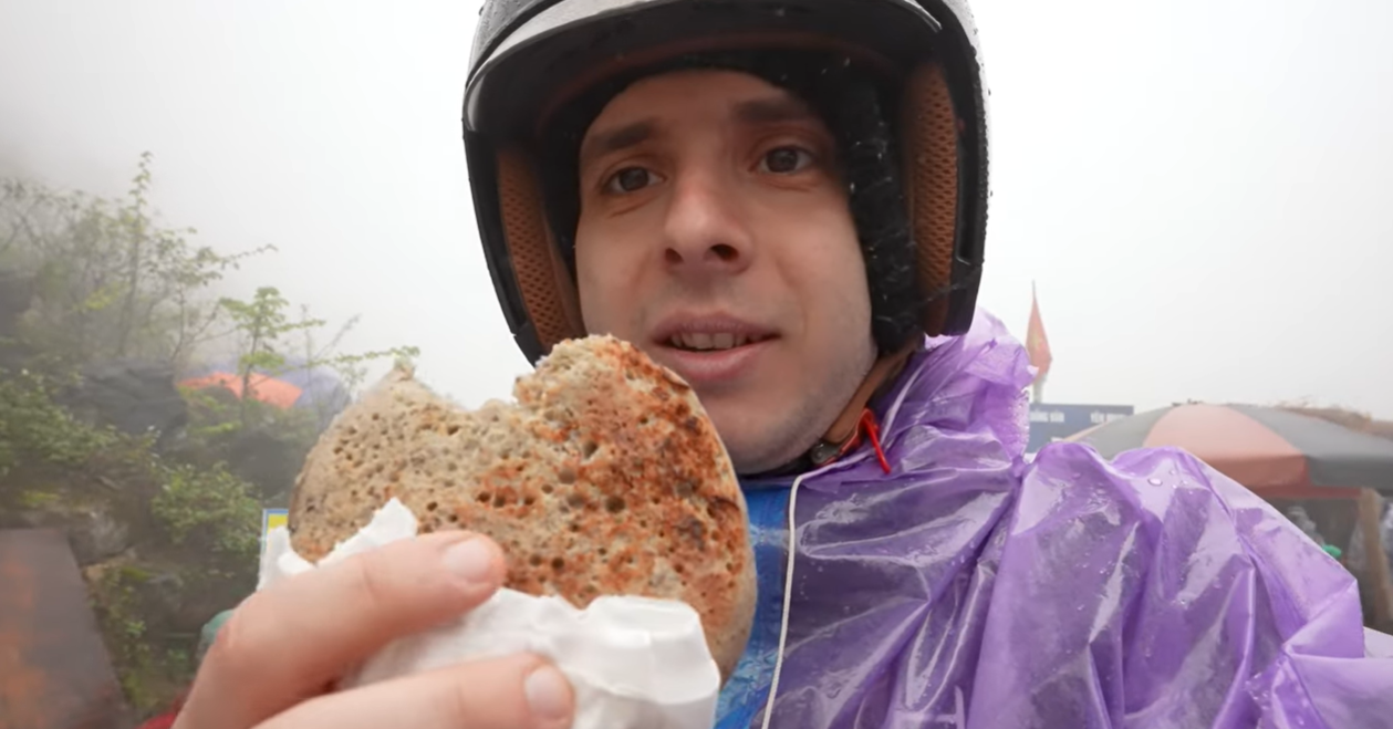 Cắn miếng đầu tiên, chàng trai châu Âu thốt lên “thật tuyệt”. Anh nhận xét bánh không có nhiều hương vị, “chỉ là bột tam giác mạch thôi và hơi mặn một chút”.