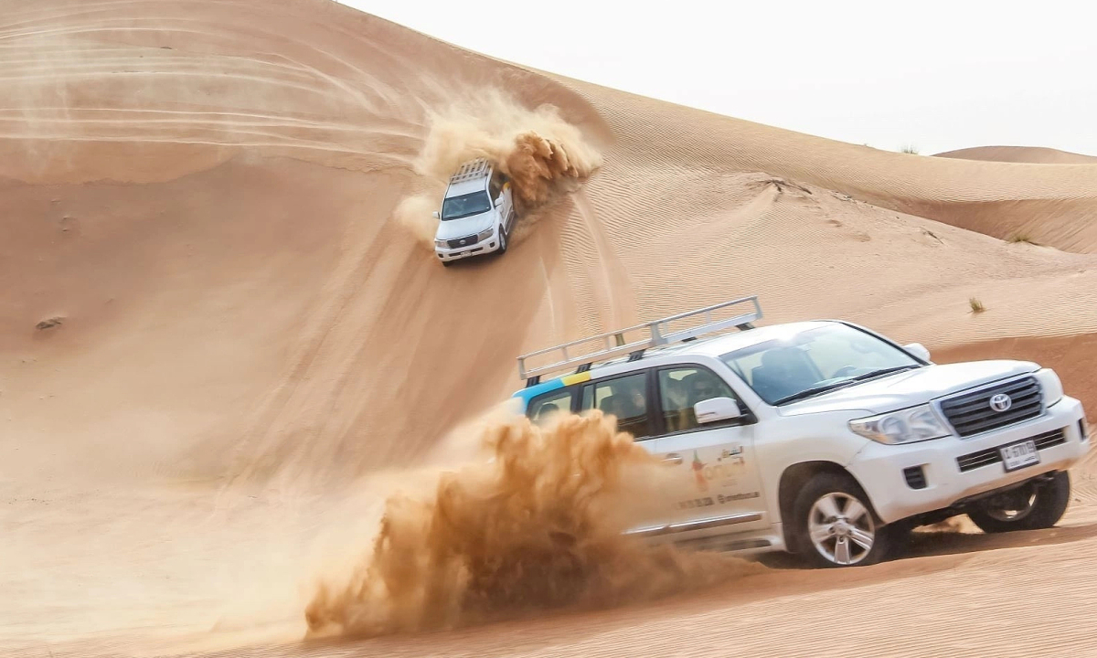 Khám phá sa mạc là trải nghiệm hầu hết khách Việt đến Dubai (UAE) chọn tham gia, thường bao gồm trong lịch trình tour. Chuyến đi bắt đầu vào buổi chiều kết hợp ăn tối, với những hoạt động tự chọn như lái xe ATV, trượt ván cát, ngắm cảnh trên lưng lạc đà, bay khinh khí cầu và đặc biệt là đi xe địa hình.