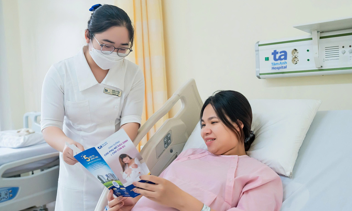 Chuyên viên khoa Dinh dưỡng tiết chế đang tư vấn cho một sản phụ. Ảnh minh họa: Bệnh viện Đa khoa Tâm Anh