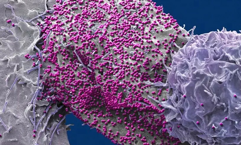 Một tế bào người nhiễm HIV. Ảnh: Steve Gschmeissner/ Science Photo Library